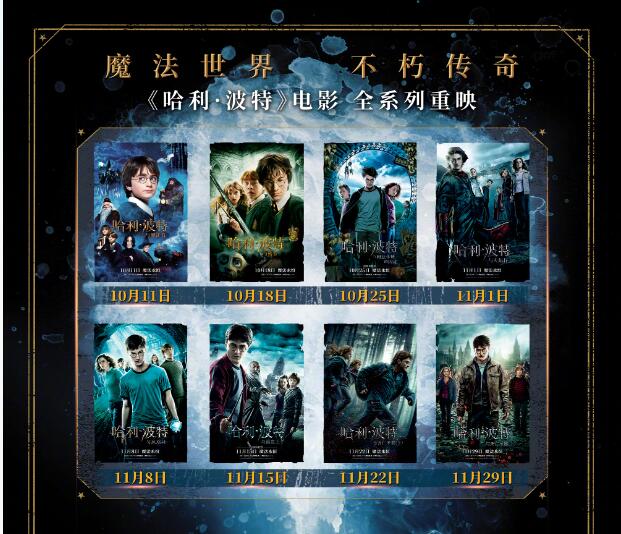 9月20日,@华纳兄弟电影 发文称,《哈利·波特》全系列八部影片将于今年10月11日起,在全国影院进行重映。