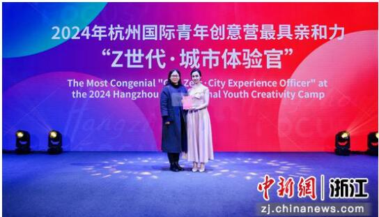 活动现场,“Z世代·城市体验官”穆斯塔法、戴安娜、欧丽娅、卡佳等分别获得杭州国际青年创意营2024最具影响力、传播力、亲和力奖。