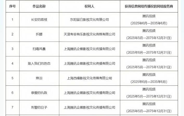 按照国家版权局《关于进一步加强互联网传播作品版权监管工作的意见》及版权重点监管工作计划,根据相关权利人上报的作品授权情况,现公布2025年度第六批重点作品版权保护预警名单。