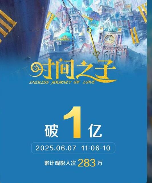 快科技 6 月 7 日消息,据灯塔专业版实时数据,截至 6 月 7 日 11 时 6 分,影片《时间之子》票房突破 1 亿。