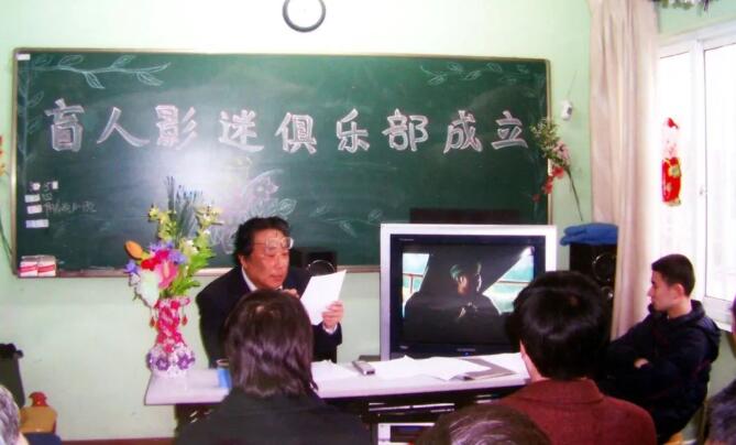 2007年3月 王世杰在上海闵行江川街道为盲人讲解电影