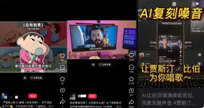 法治网记者调查发现,如今此类声音克隆现象非常普遍,几乎在各大视频平台,都能找到演艺明星和IP角色的AI翻唱及AI拟声视频。