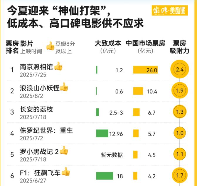 《南京照相馆》《浪浪山小妖怪》《长安的荔枝》…… 这些影片涵盖历史、动画、喜剧、奇幻等十多种类型,让 “电影的夏天” 热度持续攀升。