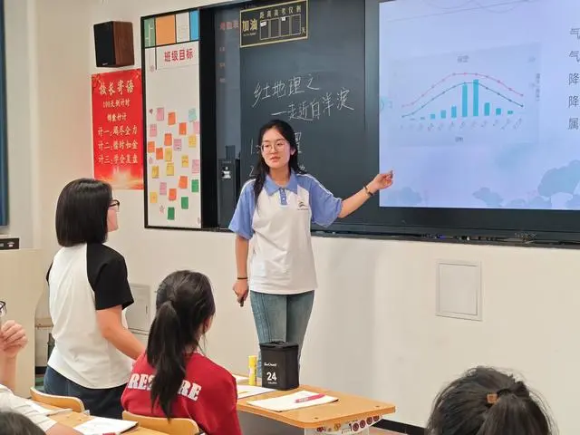 她介绍说:“学生们来自白洋淀所在的雄安新区,那如何用地理知识认识白洋淀呢?希望通过有趣的地理知识,锻炼学生的地理思维能力。”经纬线图、降水量气温图、地形地貌图等一系列地理学科中的内容被融入到课程中,学生用地理知识认识家乡。同时,王诗雨也不忘提醒学生们,“从初中到高中的过渡,更要提升自主学习能力”。