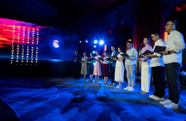 诗会的最后,伴随着张若虚的名篇《春江花月夜》,侧耳主播们齐登舞台,与观众一起“海上明月共潮生”。诵读声、旋律声、掌声萦绕现场,不仅让这场侧耳诗会尤为特殊,也令这个别样的中秋之夜格外难忘。