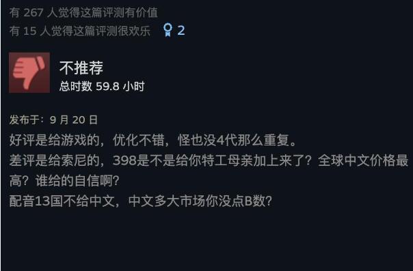 没中文配音只是个大前提,真正让玩家们破防的,是没中配的战神 5 在国区售价还贼贵,高达 398 元人民币。