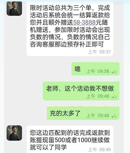 这些赞赏任务要求小美预先存入一定金额的资金,并由系统进行匹配操作。在成功完成前两单任务并获得小额返利后,小美顺利提现。App的客服告诉她,第二天可以进行大额三联单任务,这样她就能一次性提现更多金额,而且投入越多,回报越高。小美在查看自己的赞赏值后发现,只要完成联单任务,她就有资格领取配音设备,于是她分三笔共计充值了9754元。