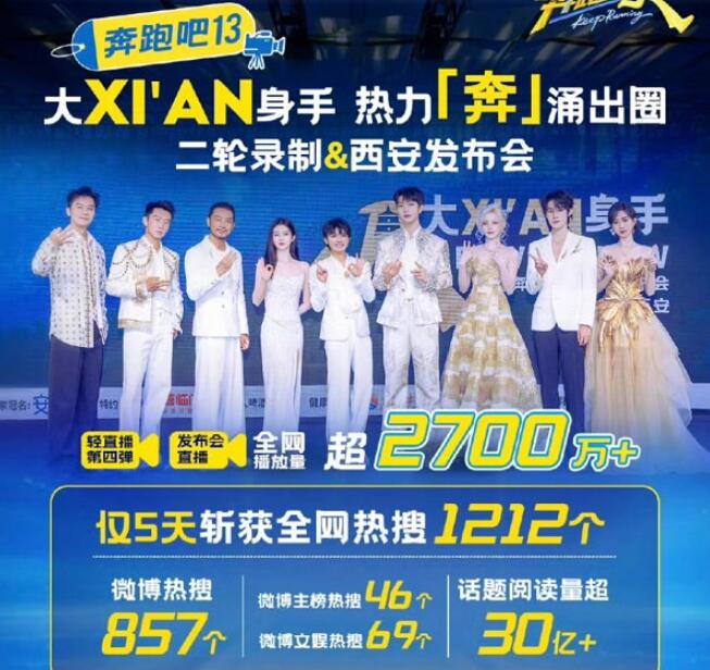 作为综艺界的“常青树”,《奔跑吧13》一开播就展现了强大的“霸榜”实力。本季节目收视稳中有升,CSM71城收视率屡创新高,西安站更是以2.729的收视率强势登顶;微博开分8.5,好评率超77.8%,创下历季微博评分最高分;在云合、骨朵、猫眼等多个权威榜单中稳居前列,斩获微博+抖音双平台“爆款综艺”认证。