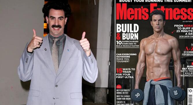 上周销售的英国版《男士健身》(Men’s Fitness)杂志,以主演过《波拉特》系列电影的英国演员萨莎·拜伦·科恩(Sacha Baron Cohen)为封面人物,让人眼前一亮。只见53岁的他,手持哑铃,一身腱子肉,与过往他塑造的或文弱或猥琐的银幕形象大相径庭。因为他从没演过什么动作片,如今却忽然转型成肌肉猛男,也在社交媒体上引来不少热议。
